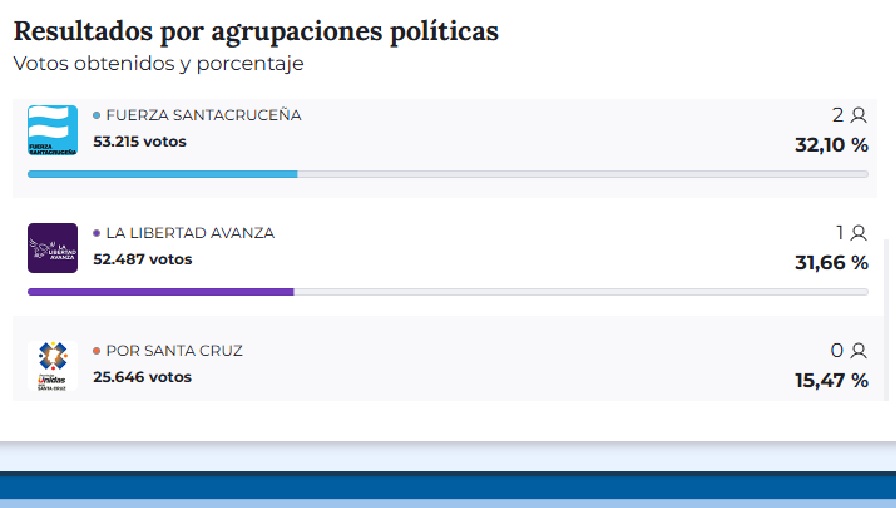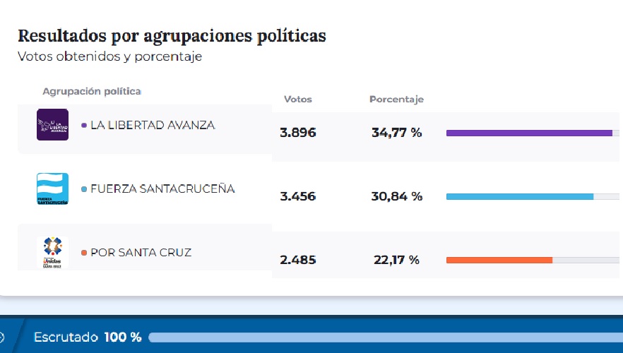 Las Heras-, Con el 100% de las mesas escrutadas, los resultados oficiales confirman que La Libertad Avanza se impuso en nuestra localidad con un 34,77% de los votos, posicionándose como la fuerza más elegida por los vecinos en estas elecciones. En segundo lugar quedó Fuerza Santacruceña, con un 30,84%, mientras que el tercer puesto fue …