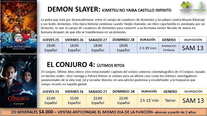 Las Heras-, Ya están los días y horarios de las dos películas que se estarán proyectando en el cine local.