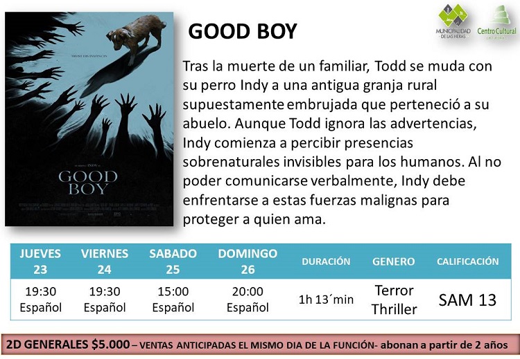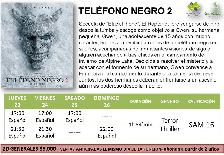 Las Heras-, Ya están los días y horarios de las películas que se estarán proyectando en el cine local.