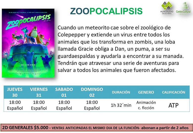 Las Heras-, Ya están los días y horarios de las películas que se estarán proyectando en el cine local.
