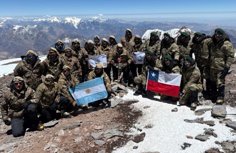 La imagen del ejercito Argentina y Chile en la Cumbre Aconcagua 2026