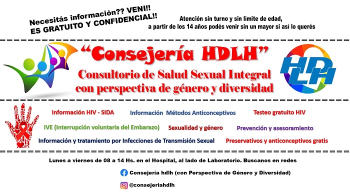 La Consejería Hdlh es un consultorio que funciona en el Hospital Distrital Las Heras El objetivo de la Consejería Hdlh es brindar información y asesoramiento a toda la comunidad, orientada