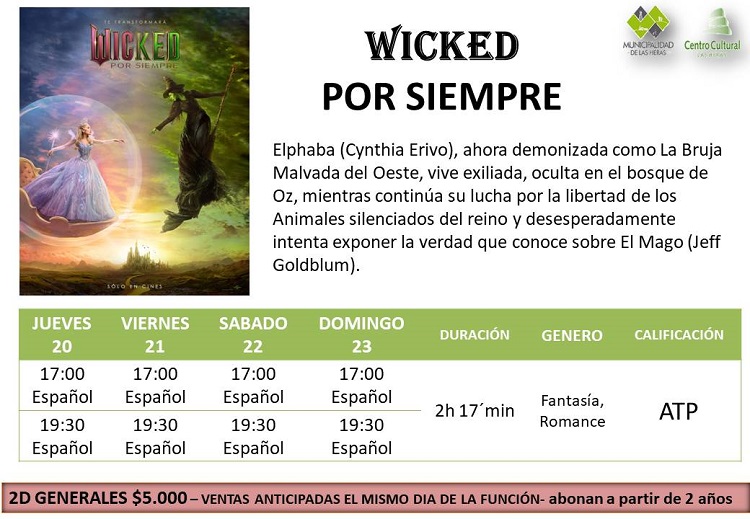 Las Heras-, Ya están los días y horarios de las películas que se estarán proyectando en el cine local.