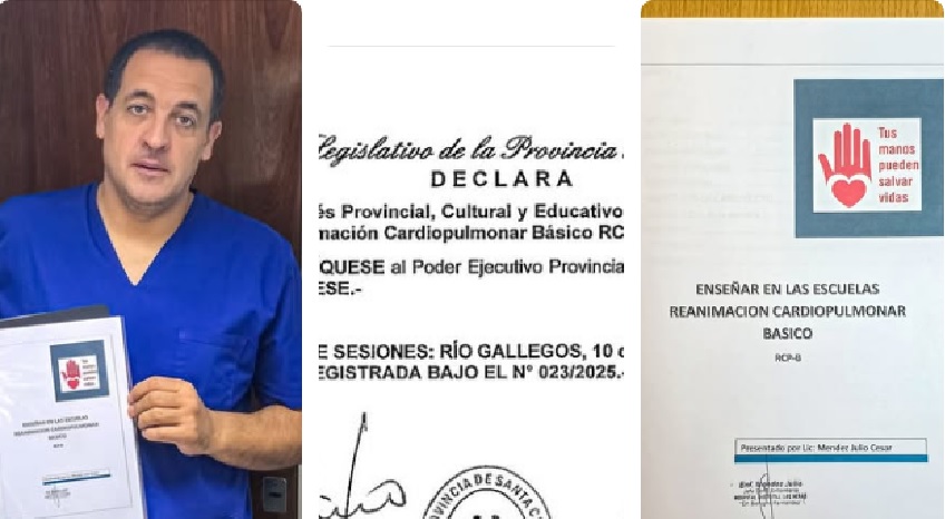 Las Heras-, Desde el hospital local, anunciaron que el proyecto ‘Enseñar en las Escuelas Reanimación Cardiopulmonar Básico RCP-B’, creado y presentado por quien lidera nuestro Departamento de Enfermería, el Licenciado Julio Méndez, ha sido declarado de Interés Provincial, Cultural y Educativo por el Poder Legislativo de la Provincia de Santa Cruz.