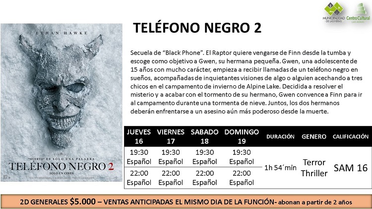 Las Heras-, Ya están los días y horarios de las películas que se estarán proyectando en el cine local.