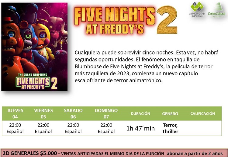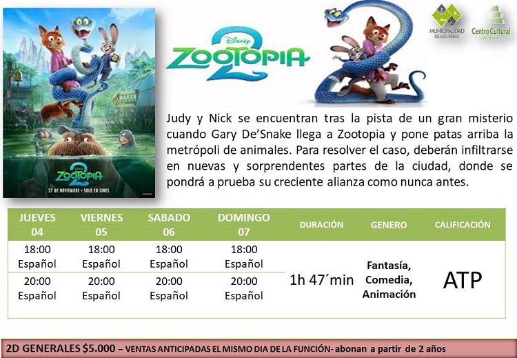 Las Heras-, Ya están los días y horarios de las películas que se estarán proyectando en el cine local.